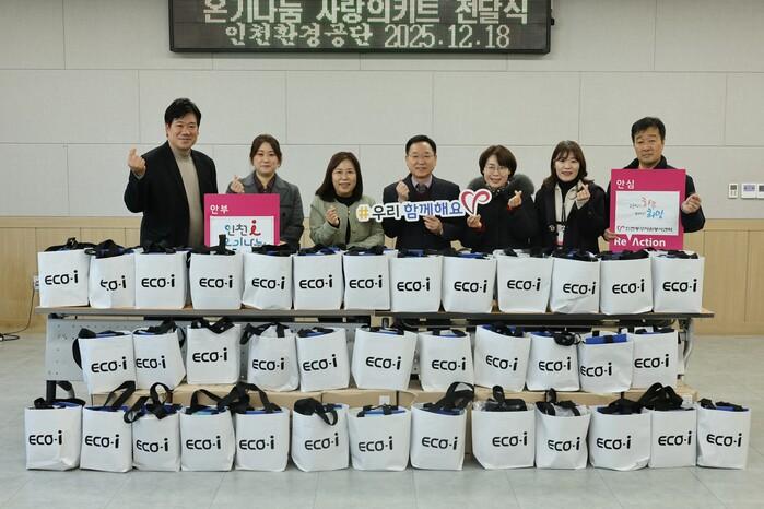 | 온기나눔 물품 전달행사 참가자들이 포즈를 취하고 있다. [사진=인천환경공단] |