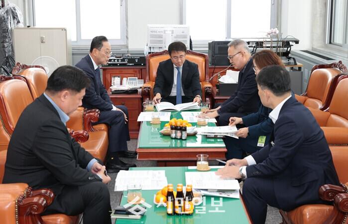 | ▲ 명현관 해남군수(왼 쪽 두 번째)가 지난 11월 14일 최석영 해남군 기획실장, 군관계자 등과 국회를 방문해 한병도 예결위원장에게 지역 현안 사업 추진을 위한 국비 지원을 요청하고 있다./ 해남군 제공 |