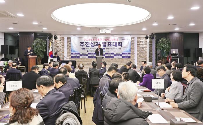 [인천=문찬식 기자] 인천 미추홀구 주민자치협의회가 최근 문학동 그랜드오스티엄 블리스홀에서 민자치 발전을 도모하기 위한 ‘2025년 주민자치협의회 추진성과 발표대회’를 성공적으로 개최했다.