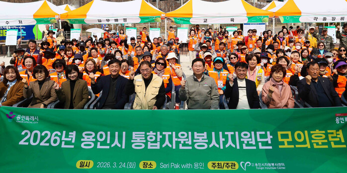 [용인=오왕석 기자] 용인시자원봉사센터는 24일 처인구 ‘SERI PAK with 용인’ 광장에서 ‘2026년 용인시 통합자원봉사지원단 모의훈련’을 실시했다고 밝혔다.