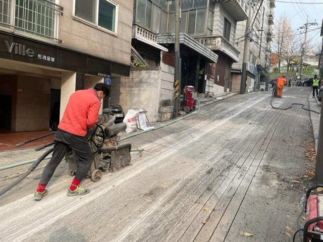 | ▲ 관계자가 도로열선 설치 공사를 하고 있다. (사진제공=중랑구청) |