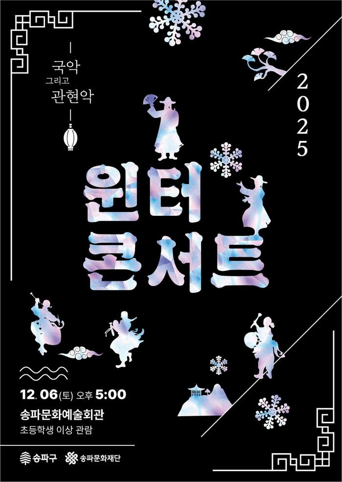 서강석 송파구청장은 “멋진 장소에서 사랑하는 사람들과 다채로운 공연을 감상하며, 즐겁고 따스한 연말 보내시길 바란다”라며, “새해에도 송파문화예술회관을 중심으로 구민의 문화 향유 기회를 확대하기 위해 최선을 다할 것”이라고 전했다.