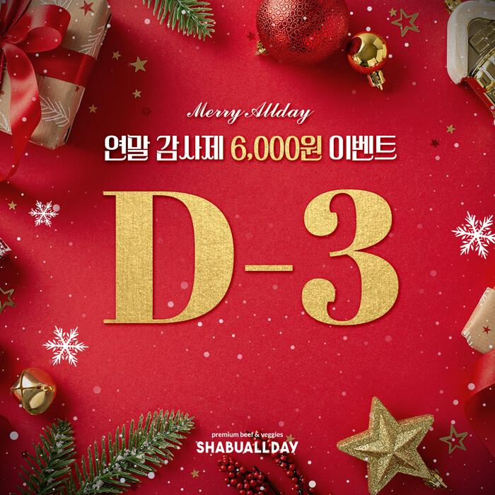 샤브올데이가 한 해의 마지막을 고객과 함께 나누기 위한 특별 프로모션을 진행한다. 샤브올데이는 12월1일부터 5일까지 단 5일간, 카카오톡 플러스친구 고객을 대상으로 ‘연말 감사제 이벤트’를 열고 선착순 고객에게 6000원 할인 쿠폰을 제공한다고 밝혔다.