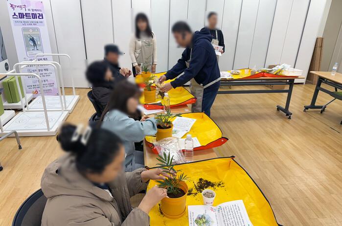 | ▲ 2024년 자살 유족 자조모임 '희망샘'에서 화분만들기 프로그램을 하는 모습. |