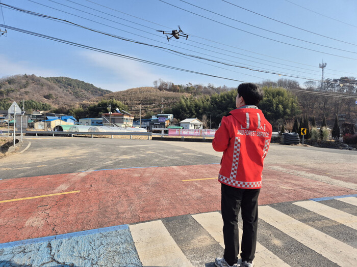 시는 산림정원과에서 보유 중인 열화상 드론 2대와 드론 자격증을 보유한 직원 3명을 ‘산불 드론감시단’으로 조직해 논·밭두렁 및 영농 부산물 소각 등 산불 발생 위험이 높은 장소를 중심으로 감시를 추진하고 있다.