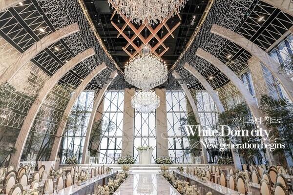 광진구 건대웨딩홀 까사그랑데 센트로는 13M의 높은 천고와 돔 형태의 특별한 구조로 다른 곳에서는 시도하지 않은, 트렌디한 웨딩 스타일을 선보이는 곳으로 특히, 통창 너머 자연광이 들어와 이국적인 분위기를 갖춘 곳이다.