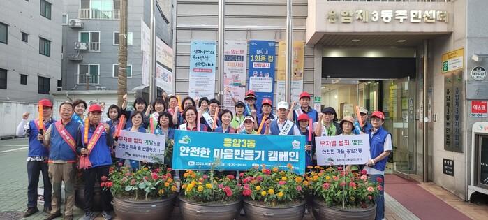 응암3동 주민센터에서 지난 8일 ‘무차별 범죄 예방단’ 발대식을 가졌다. 또 응암3동의 랜드마크인 응암오거리와 대림시장, 불광천변 등지에서 무차별 범죄예방 길거리 캠페인을 벌이고, 향후 지속적으로 묻지마 범죄예방 캠페인을 펼치기로 했다.