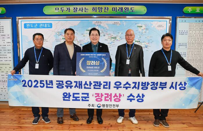 완도군이 행정안전부가 주관한 ‘2025년 공유재산 총조사 및 관리 분석·진단’ 평가에서 우수 지방자치단체로 선정되어 장려상을 수상했다.