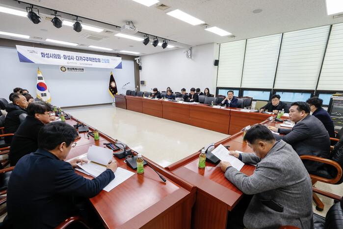 | ▲ 화성특례시의회 도시건설위원회(위원장 이계철)는 5일 의회 대회의실에서다가구주택연합회와 간담회를진행하고 있다 /사진제공=화성특례시의회 |