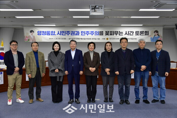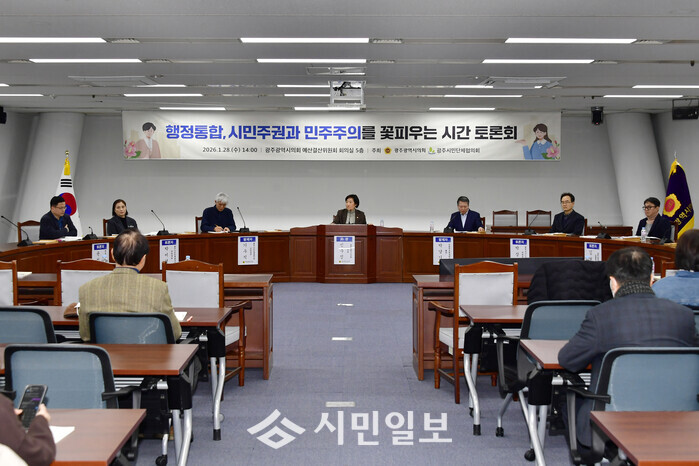 광주광역시의회는 28일 광주시민단체협의회와 공동으로 시의회 5층 예산결산특별위원회 회의실에서 ‘행정통합, 시민주권과 민주주의를 꽃피우는 시간 토론회’를 개최했다.