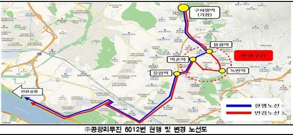 이에 구는 주민들의 교통 수요를 반영하고자 공항리무진 운수사를 비롯해 노선조정 승인 권한을 가진 서울시와 함께 최근까지 협의를 지속해 왔다. 협의 결과 공항버스 6012번이 녹번역과 은평구청을 경유하는 개편된 노선으로 1일 첫차부터 운행을 재개할 수 있게 됐다.