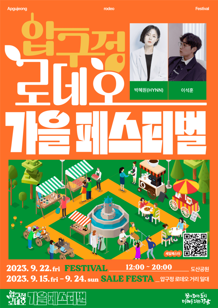 조성명 강남구청장은 “MZ세대를 비롯해 많은 관광객들이 이번 축제를 통해 새로운 트렌드를 이끄는 압구정로데오를 마음껏 즐기기 바란다”며 “앞으로도 민관이 적극적으로 협력해 상권을 대표하는 특색있는 행사를 지원해 나가겠다”고 밝혔다.