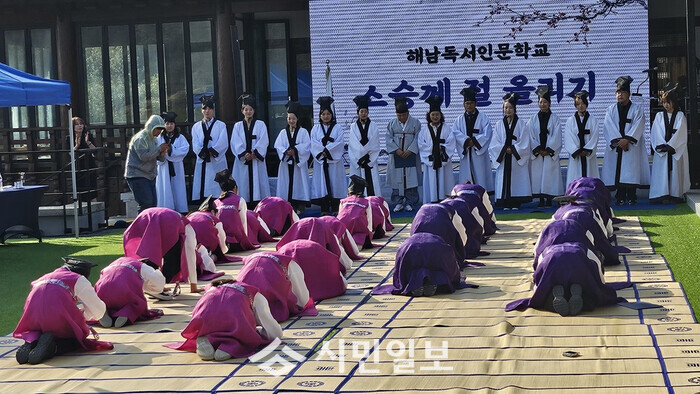 | ▲ 해남독서인문학교 속수례 입학식 스승께 절 자료사진 / 해남교육지원청 제공 |