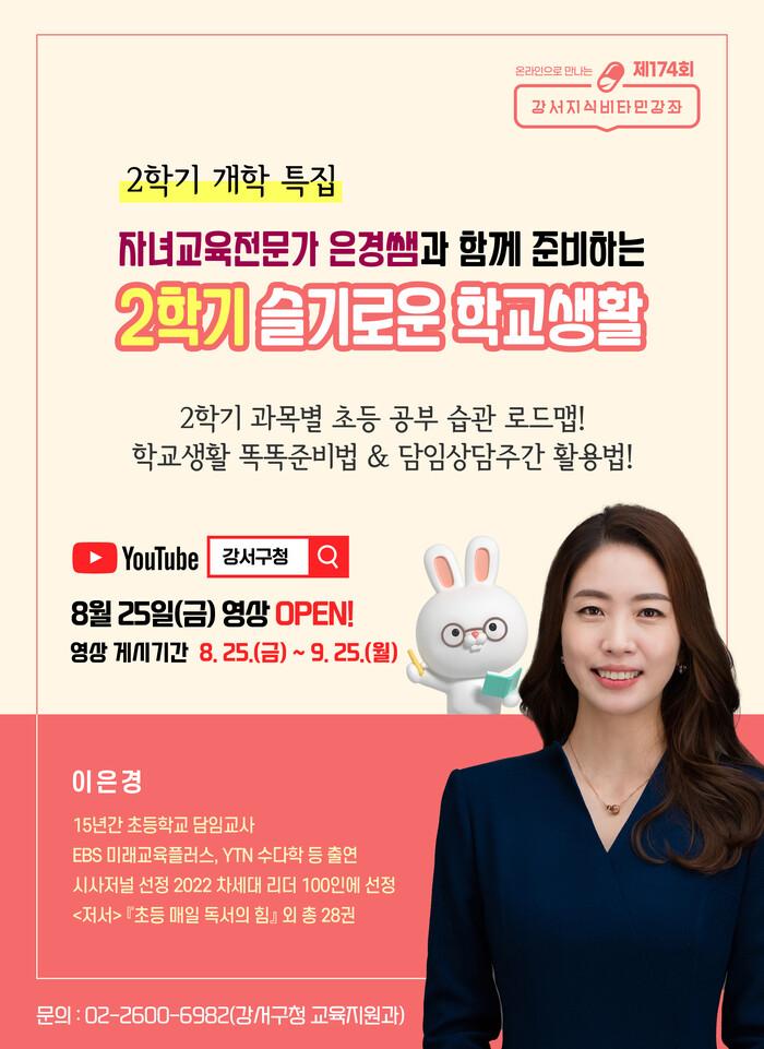 | ▲ 제174회 강서지식비타민 강좌 '2학기 슬기로운 학교생활' 포스터. (사진=강서구청 제공) |