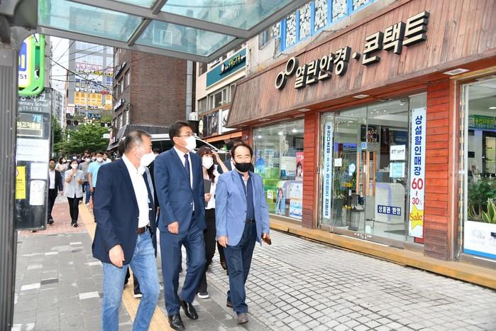 | ▲ 오승록 구청장이 구 관계자들과 공릉동 일대 간판 및 가로경관 개선사업 완료 현장을 둘러보고 있는 모습. (사진제공=노원구청) |