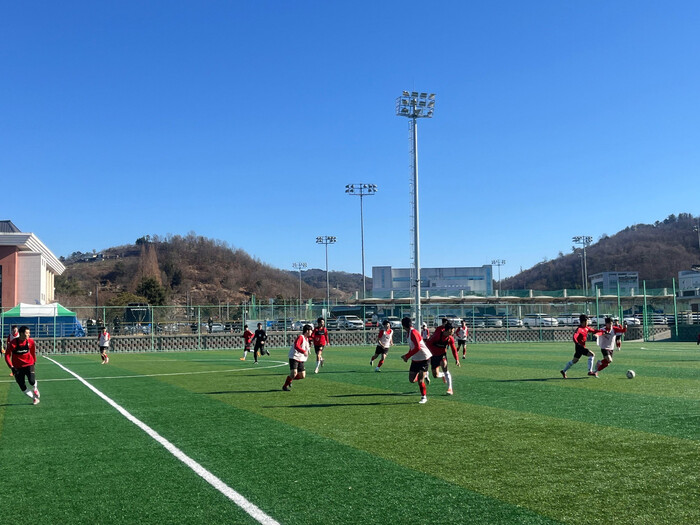 진주시축구협회(회장 이재용)가 주관하는 ‘진주성 축구 스토브리그’는 동계 전지훈련을 위해 진주를 찾은 전국 유수의 팀들에게 실전 경기의 기회를 제공하고 선수들이 시즌을 대비한 경기 감각을 극대화할 수 있도록 마련됐다. 특히 별도의 개회식 없이 곧바로 경기에 돌입해 선수들이 불필요한 형식에 얽매이지 않고 경기력 향상과 실전 감각의 조율에 집중할 수 있도록 했다.