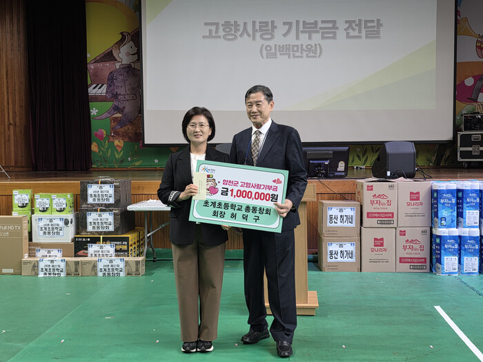 김윤철 합천군수는 “초계초등학교 총동창회의 꾸준한 기부와 지역사랑 실천에 깊이 감사드린다”며 “동문들의 소중한 마음이 지역 발전의 밑거름이 될 수 있도록 고향사랑기부제를 더욱 내실 있게 운영해 나가겠다”고 밝혔다.