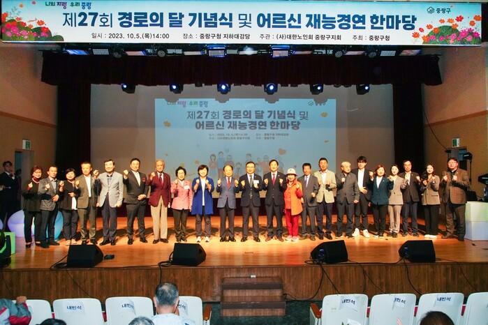 [시민일보 = 여영준 기자] 서울 중랑구(구청장 류경기)는 10월 경로의 달을 맞이해 최근 지역 노인 500여명을 초대해 ‘2023년 경로의 달 기념식 및 재능 한마당’을 개최했다고 6일 밝혔다.
