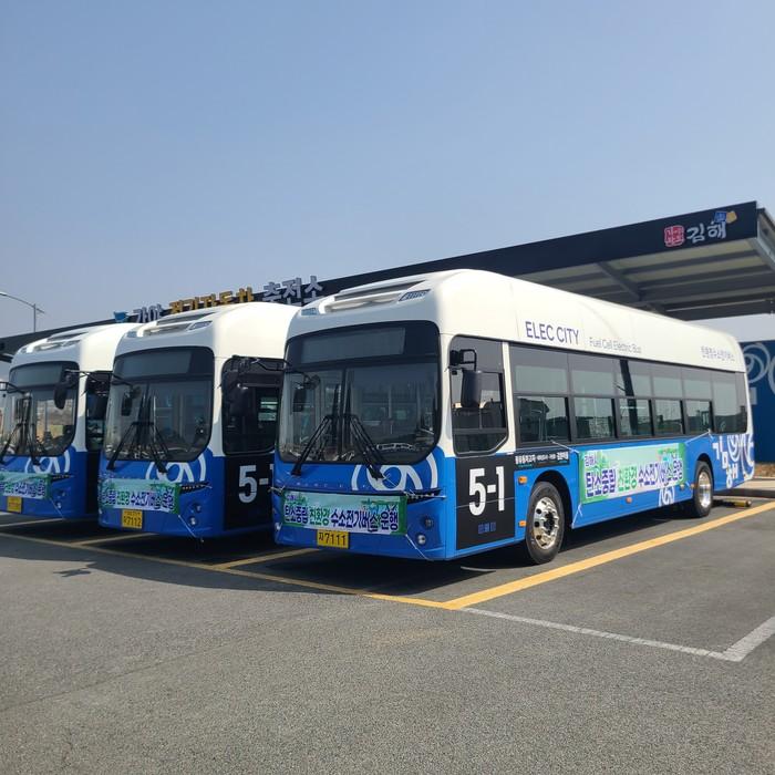 수소전기버스 노선은 2번(외동차고지~어방동) 1대, 5-1번(풍유동차고지~감분마을) 2대로 김해시는 운행에 앞서 24일 시내버스 공영차고지에서 시승식을 개최했다.