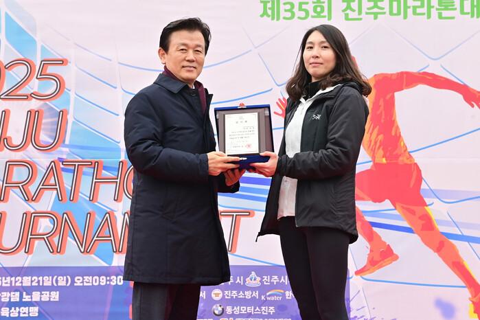 개회식에서는 마라톤 종목의 발전과 생활체육 활성화에 기여한 공로로 우유라 진주마라톤조직위원회 위원에게 진주시장 감사패를 수여했다.