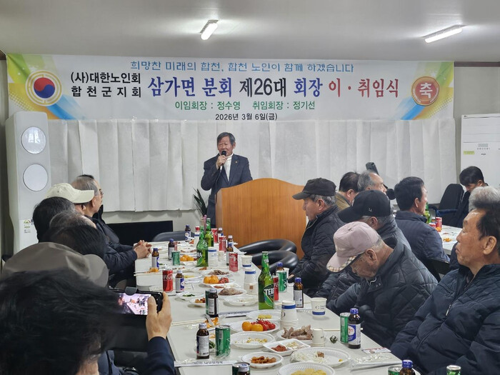 유명섭 삼가면장은 “그동안 지역 어르신들을 위해 헌신해 온 이임 회장님의 노고에 깊은 감사를 드린다”며 “새롭게 취임한 분회장님을 중심으로 어르신들이 건강하고 행복한 노후를 보낼 수 있도록 행정에서도 적극 노력하겠다”고 말했다.
