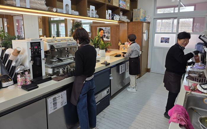 노인들은 커피와 음료 제조, 매장 관리 등 카페 운영 전반을 담당하며 방문객에게 친절한 서비스를 제공했다.