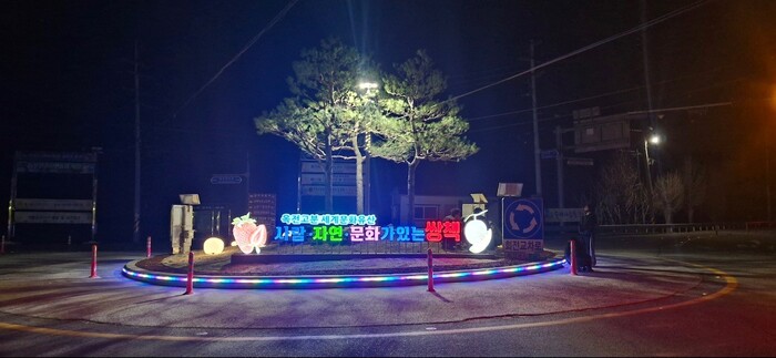 야간에는 조형물을 비추는 친환경 LED 경관조명이 은은하게 점등돼 주변 시인성을 높이고, 밤에도 지역을 알리는 경관 요소로 역할을 하고 있다.