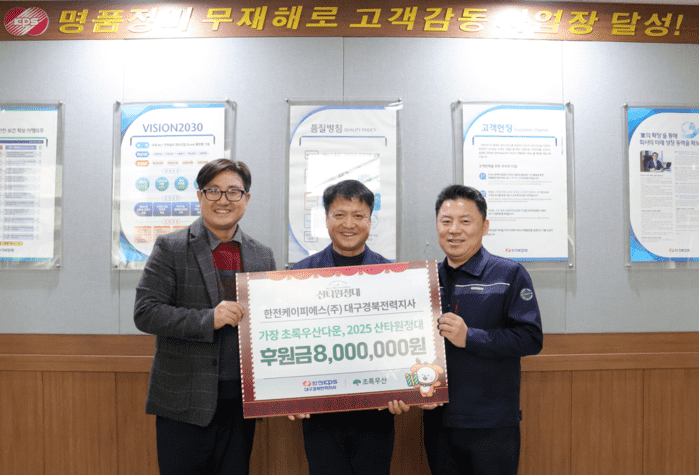 초록우산(대구경북권역총괄본부장 문희영)은 한전케이피에스(주) 대구경북전력지사(지사장 김갑기)가 ‘가장 초록우산 다운, 2025 산타원정대’ 캠페인에 후원금 금 8백만 원을 전달했다고 밝혔다.