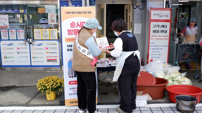 순시미는 행사에서 김장 봉사뿐 아니라 상담 부스를 운영해 방문요양, 복지 서비스, 장기요양 정보 제공 등 지역 주민 대상 돌봄 상담을 지원했다.