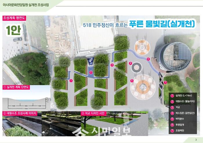 ‘아시아문화전당 실개천 조성’은 아시아문화전당 회화나무 공원 주변에 도심 물길을 조성해 아시아문화전당과 구도심 활성화를 도모하는 사업이다. 광주시는 2025년부터 2026년까지 총 30억원(국비 15억원·시비 15억 원)을 투입해 사업을 추진한다.