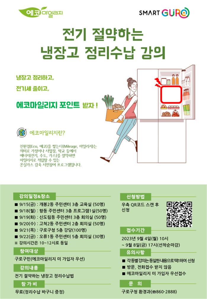[시민일보 = 이대우 기자] 서울 구로구(구청장 문헌일)가 구민의 에너지 요금 부담을 줄이기 위한 ‘전기 절약하는 냉장고 정리수납 교육’을 추진한다.