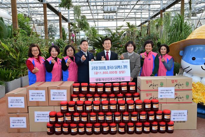 한편 생활개선진주시연합회는 매년 직접 담근 고추장을 소외된 이웃들에게 전달하고 있으며, 급식 봉사, 안전리더 재해 예방 활동, 탄소중립 생활 실천 등 나눔문화 확산과 지역사회 발전을 위해 활발한 활동을 이어오고 있다.