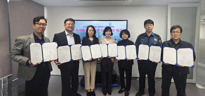 협약 참여 기관은 ▲수서동 주민센터를 비롯, ▲강남세움복지관 ▲수서종합사회복지관 ▲수서명화종합사회복지관 ▲수서파출소 ▲주택관리공단 서울수서관리소 ▲SH공사 수서6단지 관리사무소 등 7곳이다.