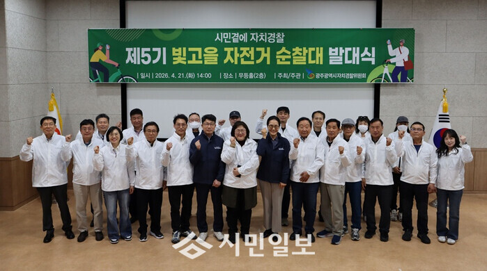 [광주=정찬남 기자] 광주광역시자치경찰위원회는 21일 시청 무등홀에서 ‘제5기 빛고을 자전거 순찰대’ 위촉식을 열고 공식적인 활동의 시작을 알렸다.
