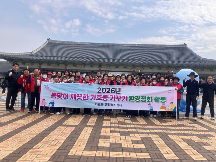 진주시 가호동은 지난 26일 4월 ‘2026 아시아 이스포츠대회’ 및 5월 ‘논개제’를 대비해 시민과 귀성객에게 쾌적한 도시환경을 제공하기 위해 진주역과 가좌천 일원에서 봄맞이 환경정화 활동을 실시했다.