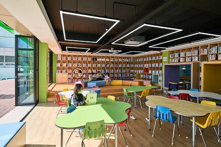 | ▲밀주초 내외부 개방형 도서관에서 자유로운 휴식, 독서 모습 |