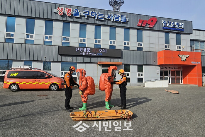 | ▲ 화학사고 대응훈련 / 강진소방서 제공 |