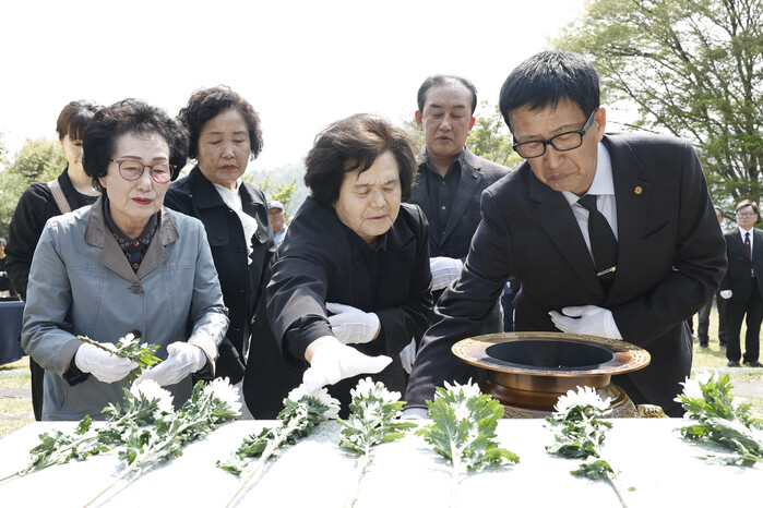| ▲ 유가족과 참석자들이 제암리 순국 묘역에서 국화를 헌화하며 추모하고 있다 /사진제공=화성특례시 |