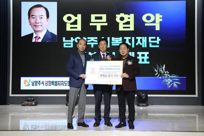 이번 협약은 ‘남양주시 강원특별자치도민회 2025년 송년의 밤’행사에서 진행됐으며, 도민회원들이 뜻을 모아 지역사회에 대한 책임과 지속적인 나눔의 가치를 공유하는 의미있는 자리로 마련됐다.