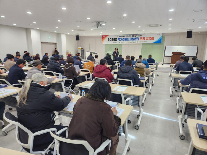 진주시는 6일 농업기술센터 농업인교육강의실에서 먹거리통합지원센터의 출하농가 111명을 대상으로 ‘2026년도 먹거리통합지원센터 운영 설명회’를 개최했다.