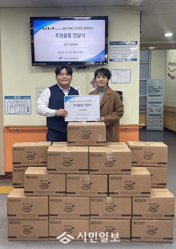 22일에는 기아오토큐 광산서비스센터(대표 오명숙)가 지역사회 장애인 이웃들의 건강한 식생활을 지원하기 위해 김치 300㎏을 전달했다.