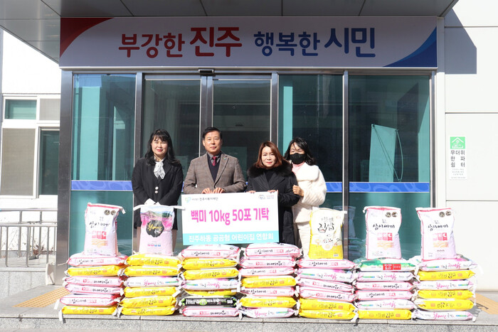진주하동 공공형 어린이집 연합회(회장 송영숙)는 22일 지역사회 어려운 이웃돕기 백미 10kg, 50포(총 500kg, 환가액 150만 원 상당)를 진주시복지재단(이사장 이성갑)에 기탁했다.