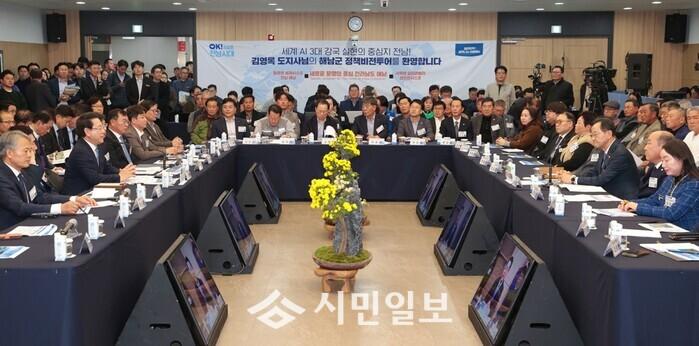 명현관 해남군수는 “최근의 전남, 해남에 일어나고 있는 세상이 놀랄만한 일들은 김영록 지사께서 구상한 블루시티 프로젝트에서 시작돼 오랜 노력 끝에 결실이 나타나고 있는 것”이라며 “대한민국 에너지·AI 수도의 원대한 꿈을 이루는데 준비된 해남군이 앞장서 나가겠다”고 의지를 밝혔다.