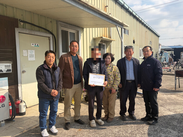 진주시 금곡면봉사단체장협의회(회장 김영수)는 2월 11일 화재 피해를 입은 금곡면 시평마을 버섯재배사 대표에게 위로금을 전달했다.