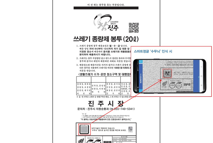 새로운 보안 요소가 적용되는 종량제봉투는 오는 3월 이후 순차적으로 시중에 공급될 예정이며, 진주시는 앞으로도 종량제봉투 유통의 투명성과 신뢰성을 높이기 위해 관리 체계를 지속적으로 개선해 나갈 계획이다.