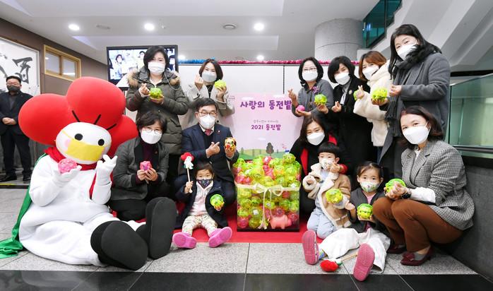 경기 광주시가 진행한 ‘희망 2022 나눔으로 행복한 광주 캠페인’에 총성금 및 현물 7억6406만원이 모금돼 목표금액 5억원을 훌쩍 넘겼다. 시는 모금액으로 저소득가구 생계지원 등 소외계층의 복지 향상을 위해 사용할 계획이다. 사진은 모금행사에 참석한 신동헌 시장이 관계자들과 기념촬영을 하는 모습.(사진제공=광주시청)