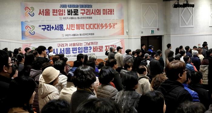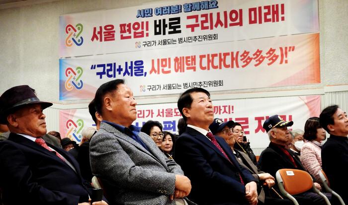 [구리=최광대 기자] 구리가 서울되는 범시민추진위원회(공동위원장 이상배, 이춘본, 곽경국)는 11월 19일(수) 14시부터 16시까지 구리시청 1층 대강당에서‘구리시 서울 편입 시민 설명회’를 개최했다.