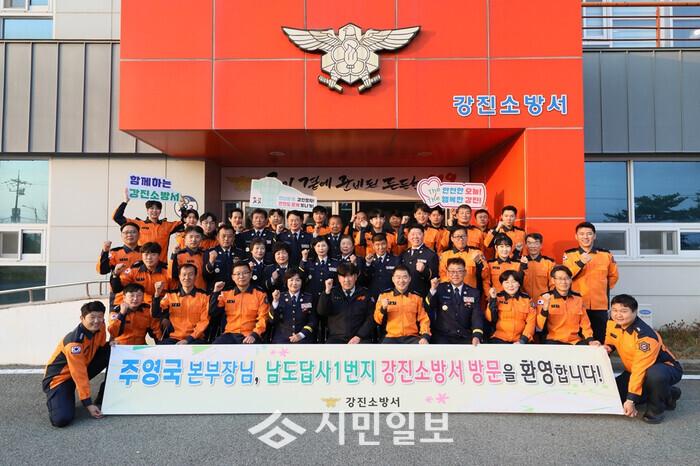 | ▲ 주영국 전남소방본부장,11일 강진소방서 방문 기념촬영 / 강진소방서 제공 |