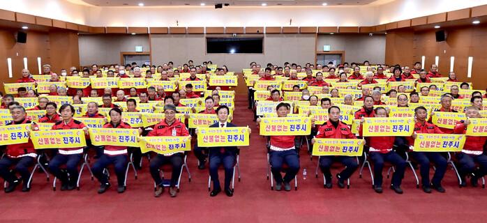 진주시는 28일 시청 2층 시민홀에서 산불감시원 및 산불전문예방진화대, 읍면동 담당 공무원 등 200여 명이 참석한 가운데 ‘2025년 추기 및 2026년 춘기 산불방지 발대식’을 개최했다고 밝혔다.