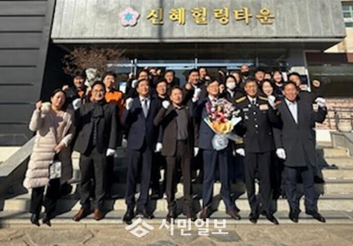 | ▲ 해남소방서, 해남읍 소재 신혜힐링타운 안전관리 최우수기관 현판식 및 표창장 수여 후 기념촬영 / 해남소방서 제공 |